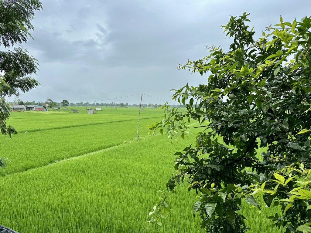 De omgeving van Chitwan is laaggelegen ten opzichte van Kathmandu en waar het in Kathmandu superdruk en chaotisch was, is Chitwan groen en nog eens groen en heel erg rustig. Het grenst tegen een oerwoud aan. Op dit moment is hier het regenseizoen en regent het regelmatig en komt het met bakken uit de hemel en is het hier gemiddeld tussen de 32 en 40 graden met een hoge luchtvochtigheid, iets waar ik altijd veel last van heb met als gevolg dat ik veel vocht verlies door het zweten. Dus betekent dat ik veel water (moet) drinken wil ik een beetje gehydrateerd blijven.